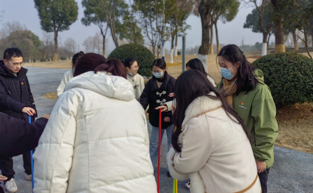 活动前是一个热身小游戏,同学们围成一圈玩不倒森林,同学们每人手持一根长杆,依次轮换位置去握住别人的杆子,现场的气氛瞬间被调动起来。这考验了同学们的反应速度和协调能力,更强调了团队协作的重要性。