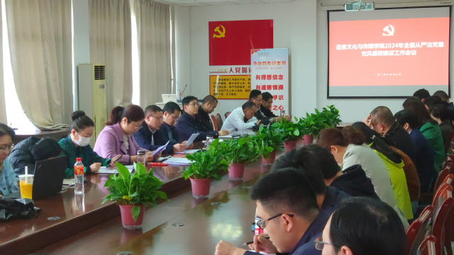 4月9日下午,语言文化与传媒学院在学院大会议室召开2024年全面从严治党暨党风廉政建设工作会议,学院全体教师参加会议,会议由院党委书记储昭辉主持。