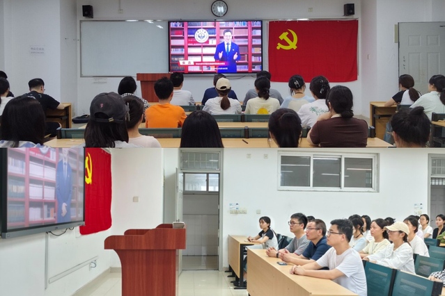 628日,语言文化与传媒学院组织师生党员观看2024年高校党组织示范微党课展播第二讲《党史中的纪律建设》,其中全体学生党员在5304教室集中观看。