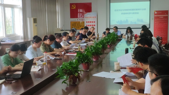 830日,语言文化与传媒学院在学院大会议室举行学习贯彻党的二十届三中全会精神宣讲会,学院党委书记储昭辉作宣讲,全体教师参会。