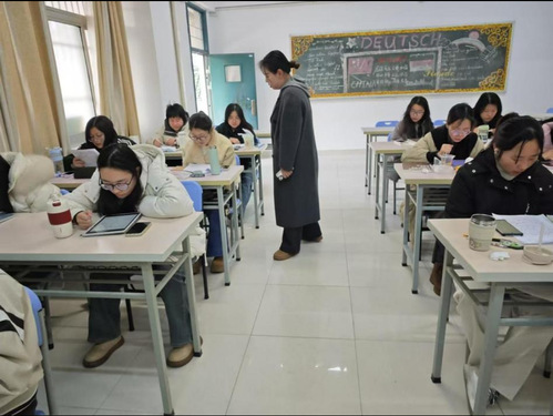 在各个自习教室,同学们沉浸在知识的海洋里,专心致志地学习。在与学生交流中,老师们着重强调了专业学习的重要性,鼓励同学们要将专业学习视为一种自觉习惯,不断夯实语言基础,拓宽国际视野。针对语言学习的特点,老师们提出了一系列切实可行的建议:一是要注重日常积累,多读多写,不断提升语言运用能力;二是要积极参与课堂讨论与课外实践活动,通过实际应用加深对语言知识的理解与掌握;三是要培养良好的学习习惯,合理规划时间,确保学习与休息的平衡。