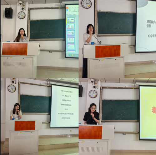 会上,八位上岸学子结合自身经历,从院校与专业选择、复习计划制定、备考心态调整等多个角度展开详细分享并对学弟学妹们进行了真诚地鼓励。其中,有同学强调了提前准备以及多渠道获取信息的重要性;有的则重点围绕复习规划、考前准备和心态调整三大要点展开讲解,介绍了快速浏览知识点法、思维导图学习法等高效复习方法;还有的同学强调明确目标和保持积极心态的重要性,表示积极心态是成功的关键。她们慷慨无私的分享收获了阵阵掌声,大家纷纷表示,收获了满满的“干货”。