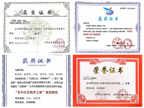 在第八届安徽省“互联网 +”大学生创新创业大赛“青年红色筑梦之旅”赛道中,她深度参与的作品《“以戏之音,为你而行”——基于“徽戏苑”戏曲文化传播产业的乡村振兴方案》脱颖而出,斩获省赛银奖。该项目巧妙地将戏曲文化与乡村振兴相结合,既展现了传统文化的魅力,又探索出了产业发展的新路径。
