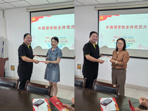 为深入贯彻中央八项规定精神学习教育,切实加强党的作风建设,6月24日,外国语学院党委组织开展主题党日活动,为入党时间在6 至 7 月的师生党员过集体“政治生日”、重温入党誓词,推动学习教育走深走实。