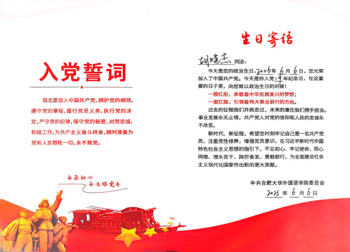 为深入贯彻中央八项规定精神学习教育,切实加强党的作风建设,624日,外国语学院党委组织开展主题党日活动,为入党时间在6 至 7 月的师生党员过集体“政治生日”、重温入党誓词,推动学习教育走深走实。