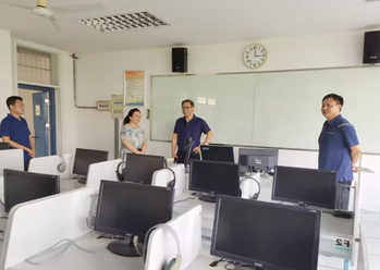 当日下午,学院领导班子前往语音室及同传教室,实地查看了解设备运行和维护情况。实验室负责人芮辰表示,所有教学设备均已完成检修维护和故障排查,确保满足新学期教学需求。