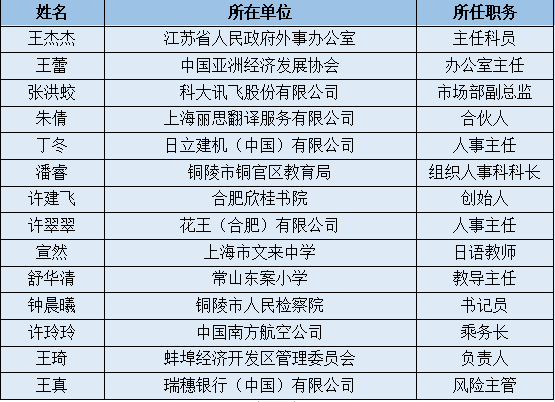 合肥学院毕业生就业率位居全省前列,是安徽省高校就业标兵单位,学生就就业创业和用人单位满意度高。日语专业历届毕业生常年保持96%以上的高就业率。目前,专业现有共计十六届总计400余名毕业生,为长三角地区输送了大批高素质应用型外语人才,毕业生社会赞誉度高,口碑良好。部分优秀毕业生见表1。