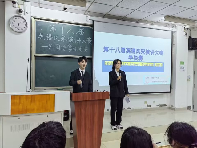 1111日晚上六点半至九点,由外国语学院团委主办的第十八届英语风采演讲大赛半决赛在一期1101教室隆重举行。本次比赛分为英语专业和非英语专业两个赛道,邀请到黄紫瑶、徐慧、史文乐、朱燕妮等优秀学生代表担任评委。
