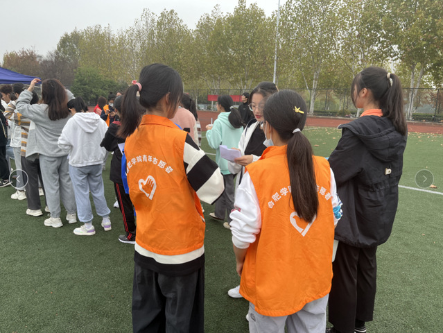 绿茵场上,除了运动健儿们矫健的身影,还有一群“小橙”随处可见。志愿者们身穿橙色马甲,早早入场,只为给运动员们提供无微不至的服务。为了提供休息场所,他们为运动员们搭起志愿帐篷;为了运动员能够顺利检录,他们全程陪同、耐心嘱咐。比赛期间,志愿者们更是一路追随运动员们的脚步,给他们加油助威。比赛结束后,他们第一时间送上水杯,给予祝福。志愿者们将“志愿先行,服务至上”的态度融入自己的行为中,他们的无私付出时刻代表着外国语学院对运动员们的真切关怀。