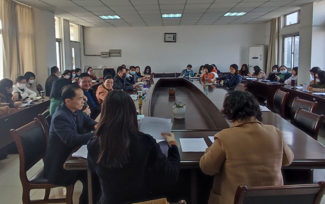 38下午,外国语学院在八栋三楼会议室召开学院领导班子成员考核和副院长李洁试用期满考核会议,学院教职工参加会议。