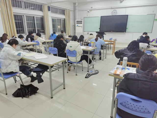 傍晚时分,结束了一天课程的同学们在六点三十分再次来到八栋教学楼进行晚自习。“学问勤中得,萤窗万卷书。”晚自习时,同学们埋头伏案,奋笔疾书,认真完成作业并整理当天的学习内容。晚自习是外院学子学习的重要环节,及时进行复习巩固,能帮助同学们提高学习效率,深化对知识的理解,从而加强记忆。在晚自习巡查过程中,李老师抽查了多个教室,仔细询问了同学们的学习情况,并勉励同学们充分利用晚自习时间,严格要求自己。