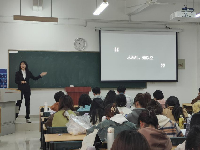 课程伊始,陈老师展示了一段综艺节目的面试视频,引出本次课程的主题。“人无礼,无以立”。陈老师主要围绕仪容与仪态、客户交往礼仪、工作场景礼仪、公共场所礼仪这四个方面,向各位同学详细地介绍了在不同场合下应该注意的礼仪细节。同时,老师还从求职信息来源和简历拟写等方面,向大家提出了宝贵的建议。