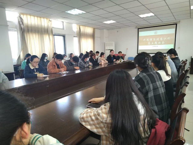 3月14日中午,外国语学院组织学生骨干召开意识形态工作专题会议,院党委副书记吴孔宝和22个班级的66名班长、团支书、思政委员参加会议,院学工办主任李发俊主持会议。