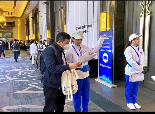 党员志愿者纷纷表示这是一次很好的学习贯彻习近平新时代中国特色社会主义思想主题教育实践课。来自英语专业的王冬梅同学介绍说:在翻译工作中感受到了作为一名学生党员,发挥自身专业优势、与国际接轨、学习更新更前沿的专业知识,为服务地方经济社会发展发挥自身力量的重要性。”作为本次志愿服务活动的总负责人和酒店会场间的引导组组长,宋滢滢同学深有感触:“我们用饱满热情的志愿服务让宾客满意,是一难得的提升自我、锻炼党性的机会,一次志愿活动就是一次爱的奉献。