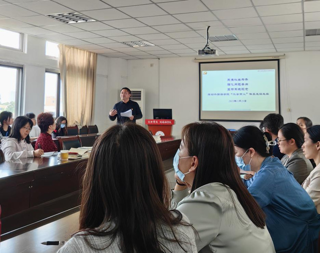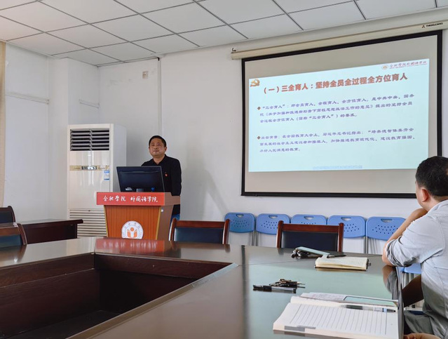 吴孔宝带领大家从“十个明确”“十四个坚持”“十三个方面成就”“六个坚持”等方面认真学习领悟习近平新时代中国特色社会主义思想的科学体系、核心要义、实践要求以及贯穿其中的立场观点方法以中国式现代化全面推进中华民族伟大复兴“矢志不渝笃行不怠走好新征程”两个方面深入理解领会党的二十大的战略部署和目标任务;从“习近平总书记教育重要论述的战略视野”“习近平总书记教育重要论述的内容体系”和“习近平总书记教育重要论述的重大意义”等方面深入学习理解习近平总书记教育重要论述。吴孔宝还向大家解读了“三全育人”出台背景、总体目标、目的要求、现实意义、合肥学院“三全育人”综合改革建设方案主要任务和外国语学院党委“三全育人 七力并举”党建品牌建强举措。