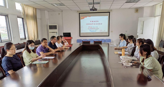 6月15日中午12时10分,外国语学院2023届毕业生座谈会于8栋301会议室举行。院党委副书记吴孔宝、学工办主任李发俊及毕业班辅导员张正华出席本次会议,毕业班学生代表参加了座谈会。