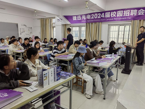 为了拓宽毕业生就业渠道,给予应届生企业招聘实时信息,9月21日下午3时30分,安徽捷讯光电技术有限公司于合肥学院8栋304教室举行了外国语学院专场招聘宣讲会。本次宣讲会中,公司负责人学生们介绍公司的基本情况、产品种类、企业文化以及招聘岗位,并为学生们提供了互动交流的机会。外国语学院2024届毕业生参加了此次宣讲会。
