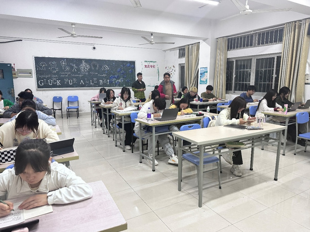 为加强外国语学院学风建设,营造积极向上、勤奋好学的学习氛围,我院始终坚持晨读晚自习的制度。10月12日晚上外国语学院学工办主任李发俊老师进行检查指导工作。
