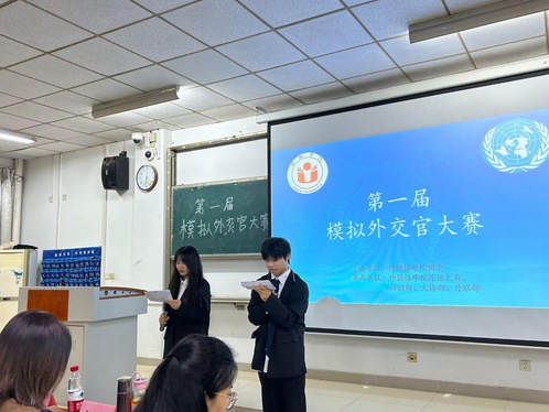 10月27日晚18:30,由外国语学院团委主办,科创部、文体部、外联部、外语之角联合承办的第一届模拟外交官大赛初赛于5-101教室顺利举行。本次比赛邀请到高乔楠、卢杨、冉志晗及李发俊四位老师担任评委,全校共计49组学生方阵参加了初赛。