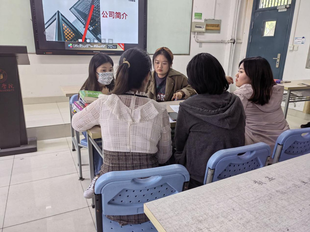 招聘会上,公司负责人详细介绍了公司基本概况、职员福利待遇及工作岗位基本要求。现场,公司负责人针对学生感兴趣的问题进行了相关解答,讨论气氛热烈。
