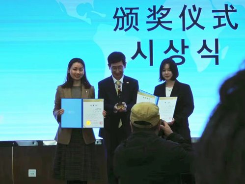 1为张惠琳老师;中为顺天乡大学副校长金瑃淳;右1为冠军石珊珊选手