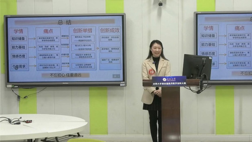 两位老师分别展示了《基础日语》和《基础德语》的教学创新成果,提出了中国特色外语教学理念、聚合语言知识与跨文化能力、线上线下混合教学模态师生合作评价体系等一系列创新举措,从课程理念、授课内容、教学模式、教学方法、教学评价方面对课程进行创新性改革,从而有针对性地解决了外语教学中的痛点问题,为外国语学院的教学改革注入了新的活力和动力。