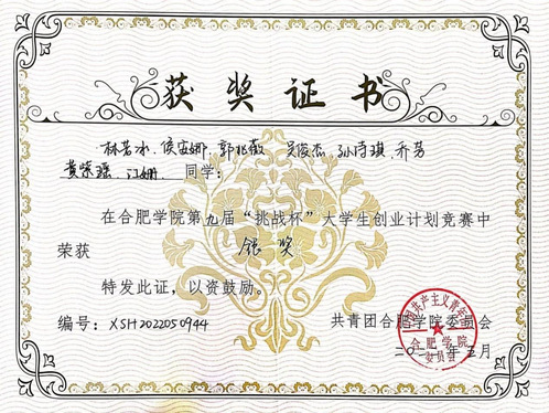 除了理论学习,乔芳还注重实践能力的培养。她积极参加各种实验和实践活动,通过亲身实践来加深对知识的理解和掌握。在校期间,她参与了合肥学院第九届“挑战杯”大学生创业竞赛计划,并荣获银奖。一念既出,万山无阻。尽管参与挑战杯的过程中仍有困难,她仍一心坚持,最终抵达成功的彼岸。