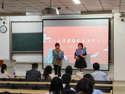 4月26日晚上6点30分由外国语学院团委主办的第十九届英语风采演讲比赛于5栋101教室举行。外国语学院英语系主任卢杨、英语系教师赵玲丽、合肥新东方国际教育中心特聘讲师耿艳亮担任评委,外国语学院团委副书记张正华及新东方江雪婷老师出席了本次比赛。