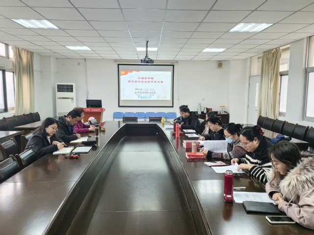 为深入学习贯彻落实习近平新时代中国特色社会主义思想和党的二十大精神,进一步提升基层党建工作水平,根据学校相关要求,1月17上午,外国语学院党委组织开展2023年度基层党支部书记述职评议大会。院党政领导班子、党委委员、党支部书记和副书记参加会议,院党委书记吴孔宝主持会议。