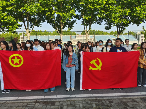清晨七点,在和煦的阳光下,国旗班身姿挺拔,步伐铿锵,护送国旗入场。伴随激昂的《义勇军进行曲》,旗手振臂一挥,鲜艳的五星红旗冉冉升起,迎风飘扬。全体成员齐唱国歌,行注目礼。随后,在学生党员毛安琳的带领下,全体学生党员重温入党誓词,重忆入党初心。在誓词的洗礼下,广大党员将牢记“我将无我,不负人民”的誓言,践行使命担当,永葆初心本色,汇聚“听党话,跟党走,感党恩”的磅礴力量,以更加饱满的热情和担当投身于新时代的建设中去。
