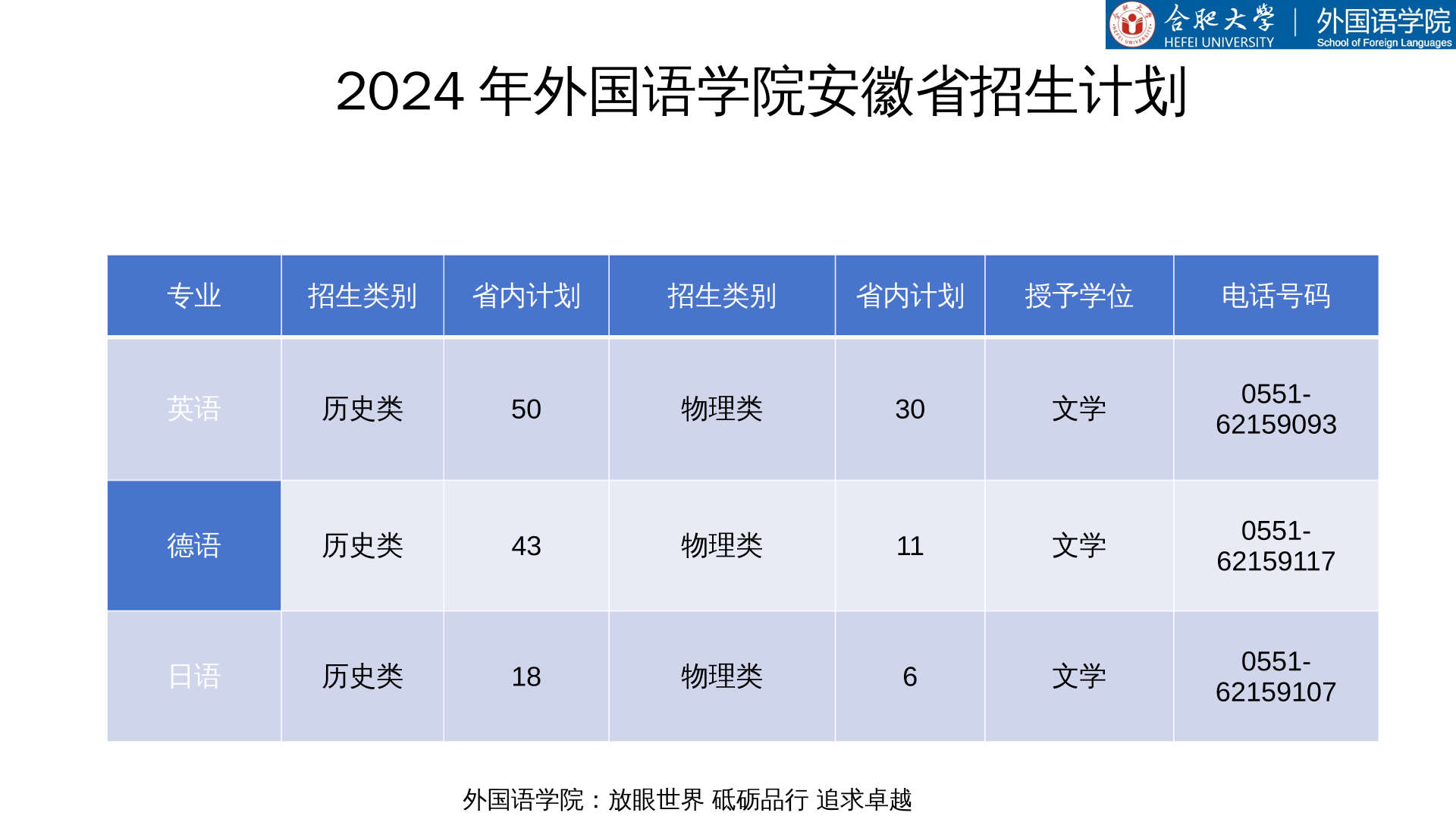 2024年外国语学院安徽省招生计划