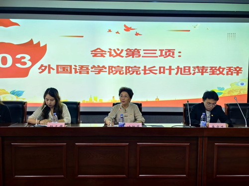 大会第三项,外国语学院院长叶旭萍致辞。叶院长向大会开幕表示热烈祝贺,同时向当选的学生会代表们致以问候。她表示,此次大会肩负总结过去一年经验、明确今后任务、选举产生未来学生会成员的重要使命。她期望学生会成员一要加强思想引领,凝聚思想共识;二要履职尽责,切实服务好青年学生成长成才;三要持续深化改革,加强自身建设。最后,出席会议的全体成员于七栋主教学楼前合影留念。至此,此次开幕式圆满结束。