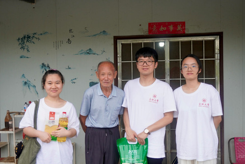 为表达对老党员们的深情敬意和感恩之情,增强大学生的荣誉感、归属感、使命感,赓续红色基因,传承优良传统,7月10日上午,外国语学院“语”你同行乡村振兴团在指导老师张正华的带领下走访慰问了三位老党员代表,忆峥嵘岁月,感红色情怀。