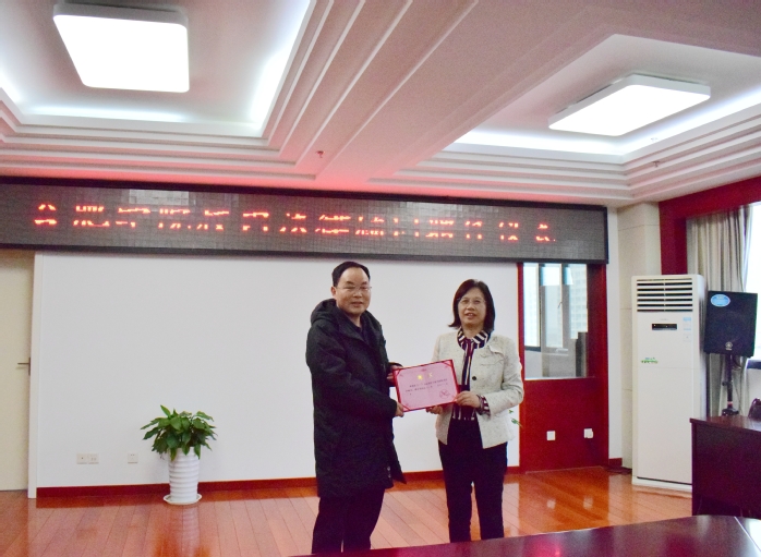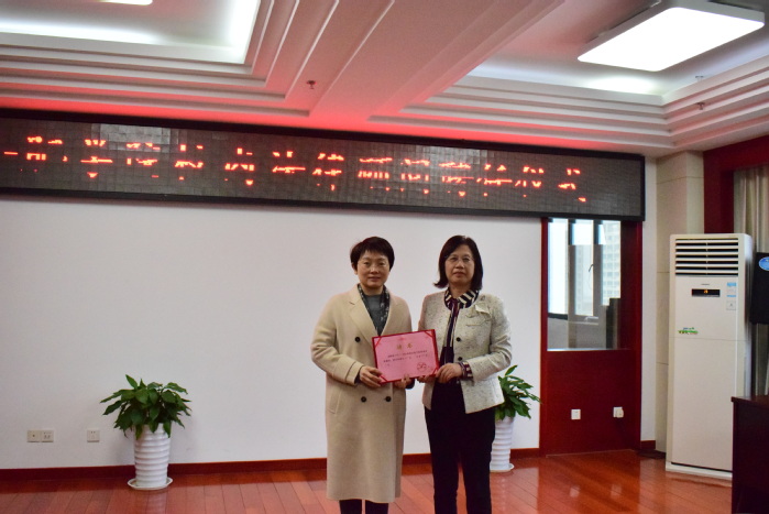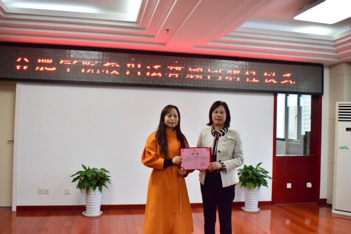 仪式上,吴春梅为陈江华、吴晓红、江玉荣三位法律顾问颁发聘任证书。