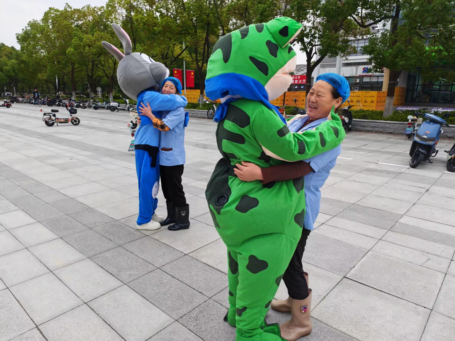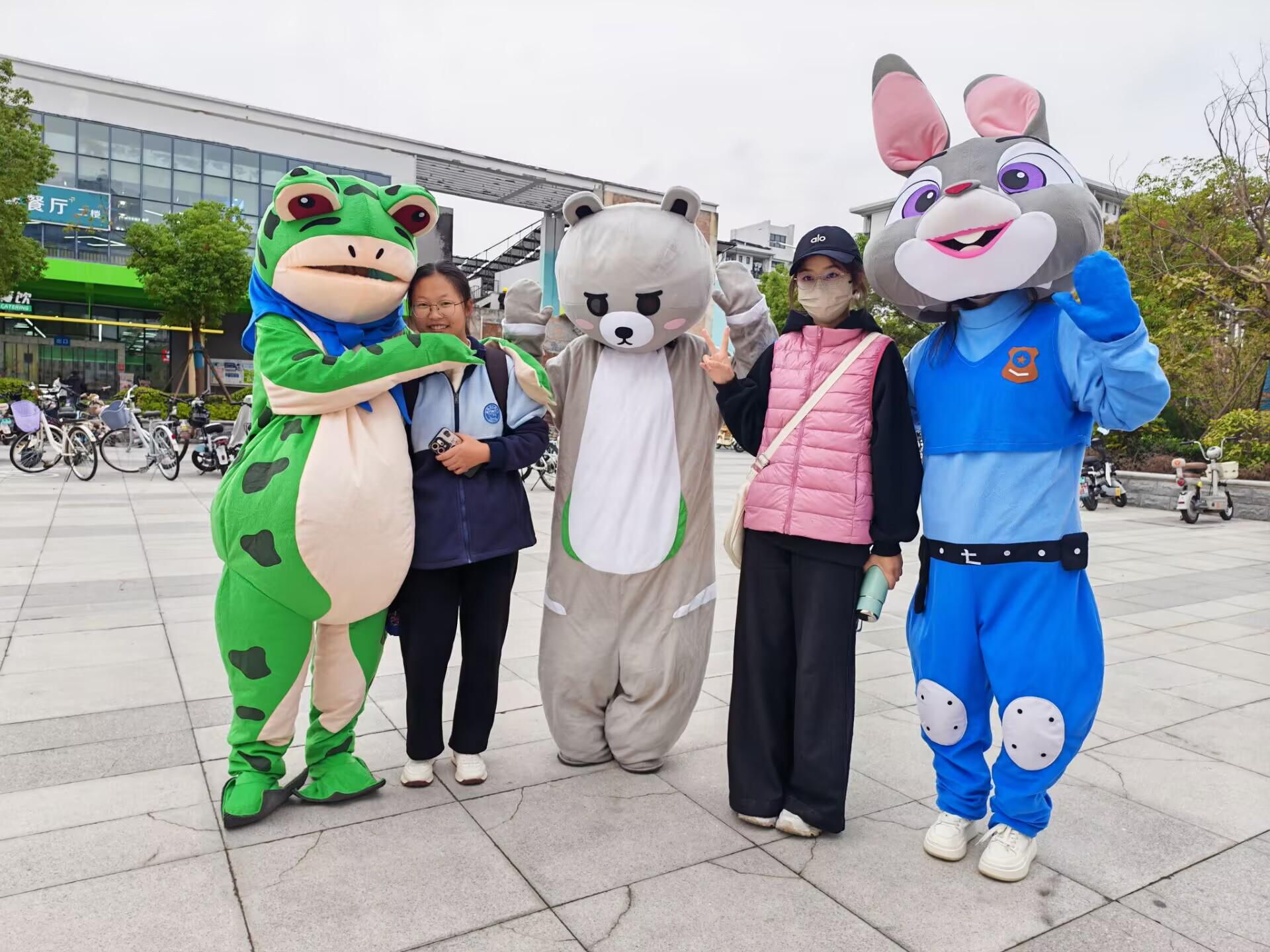 活动现场有2名志愿者负责引导队伍,并准备了定制小礼品。4名身着可爱玩偶服的志愿者早早到位,憨态可掬的造型刚一亮相便吸引了过往同学的目光。他们主动张开双臂,为大家送上治愈的拥抱,并配合拍照,用肢体语言传递关怀。温暖的氛围吸引同学和老师们驻足停留,在镜头前记录下温馨瞬间。“不用复杂流程,一个拥抱就能收获快乐,特别治愈。”现场参与活动的同学表示,这样的活动既缓解了日常学习压力,也让校园氛围更加元气暖心。