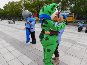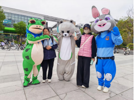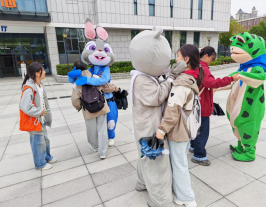活动现场2名志愿者负责引导队伍,并准备了定制小礼品。4名身着可爱玩偶服的志愿者早早到位,憨态可掬的造型刚一亮相便吸引了过往同学的目光。他们主动张开双臂,为大家送上治愈拥抱,配合拍照,用肢体语言传递关怀。温暖的氛围吸引同学老师驻足停留,在镜头前记录下温馨瞬间。“不用复杂流程,一个拥抱就能收获快乐,特别治愈。”现场参与活动的同学表示,这样的活动既缓解了日常学习压力,也让校园氛围更加元气暖心。