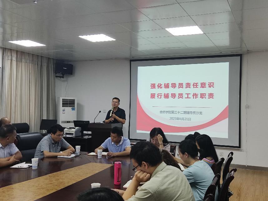 为深入学习贯彻习近平新时代中国特色社会主义思想,围绕学校辅导员队伍发展和学生思想政治工作实际,6月21日,我校在生物食品与环境学院会议室举办辅导员之家第三十二期辅导员沙龙,沙龙主题为:强化辅导员责任意识,履行辅导员工作职责。学生处处长丁增云、副处长张应杰、各二级学院党委副书记和辅导员参加会议,沙龙由生物食品与环境学院学工办主任陈玲主持。