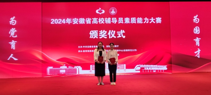 5月9日至11日,2024年度安徽省高校辅导员素质能力大赛在教育部高校思想政治工作队伍培训研修中心(安徽师范大学)举办。我校辅导员张银双老师荣获一等奖,陈静怡老师荣获二等奖,实现了我校在该项比赛中成绩的突破。