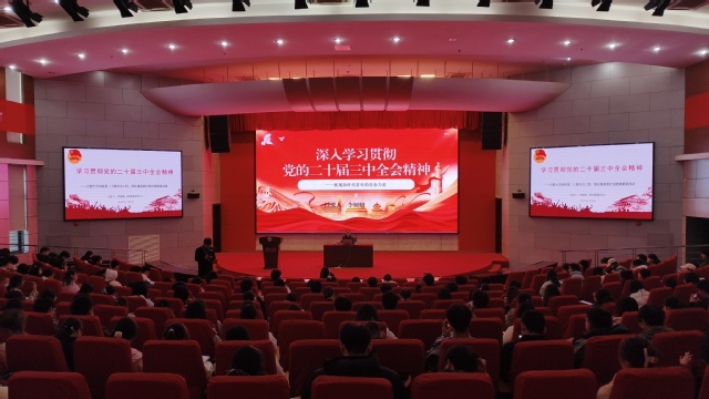 125中午我校第三十期青马班暨菁英第四次授课于图书馆报告A厅开展。校团委副书记李妍妍担任主讲,授课主题为“学习贯彻党的二十届三中全会精神”。
