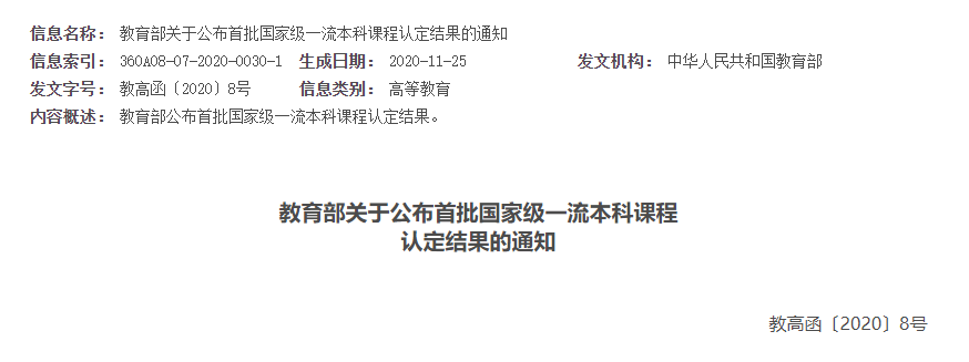 本次公布的名单认定了3560门课程为首批国家级一流本科课程,其中线上一流课程717门,虚拟仿真实验教学一流课程327门,线下一流课程1464门,线上线下混合式一流课程868门,社会实践一流课程184门。教育部一流本科课程“双万计划”是我国建设高质量本科教育的重要抓手,旨在通过转变课程理念、重塑课程形态、重构课程内容、优化教学设计、创新教学方法,打造一批有广度、有深度、有难度、有挑战度的课程,形成多类型、多样化的教学内容与课程体系,实现课程质量全面提升。首批入选的国家级一流本科课程质量高、共享范围广、应用效果好、示范性强,代表了我国当前本科课程的最高水平。