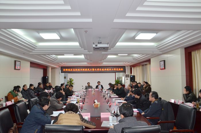 为进一步加强合肥地区高校就业创业工作交流与合作,实现资源共享、优势互补,2015年1月29日下午14点合肥地区高校就业联盟成立暨大学生就业创业工作交流研讨会在合肥学院隆重举行。省教育厅学生处处长左其琨、省人社厅就业促进处处长刘晓燕、省大中专毕业生就业指导中心主任鲍勇、副主任闫明圣以及合肥市人才服务中心、合肥经开区人才中心、合肥高新区人才中心、合肥东方英才等应邀出席了本次会议;来自合肥地区48所高校代表、合肥市重点企业代表等80余人参加了会议。会议由合肥学院党委副书记丁明主持。