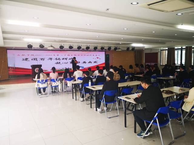 为引领广大团员青年全面学习党的十九届六中全会所提出的“十个明确”、十个“坚持”等内容和精神,提升团员的责任意识,2022年5月15日上午,校团委在大学生活动中心活动室一组织开展“建团百年铸辉煌,凝心聚力再出发”主题团日活动风采展示。参与本次活动的人员有校团委学生兼职副书记、各二级学院学生会执行主席、各候选团支部代表。