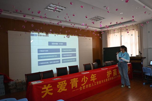 青少年学生的生命安全和健康成长,涉及亿万家庭的幸福和正常教育教学活动的开展和实施。保障他们的安全,是家庭和教育工作的首要职责,也是全社会的共同责任。为有效提升中小学生安全防范意识,引导他们更好的投入自身学习,实践团队全体队员来到朱巷镇中心学校,为小朋友们开展了一场“关爱青少年,护苗助成长”为主题的安全教育暨学业引航讲座。讲座上,实践队员通过精心制作的PPT、生动有趣的校园情景剧重点从防溺水、预防校园欺凌、远离网瘾、防电信网络诈骗以及注重人身财产饮食交通安全等方面依次开讲,并结合大量的数据、实例、图片等,把安全意识种在了在场的每位小朋友心中。同时还结合合肥学院的基本情况、校园景色等向小朋友们作了大学的宣传推荐,鼓励大家努力学习,争取考上理想的高等院校。