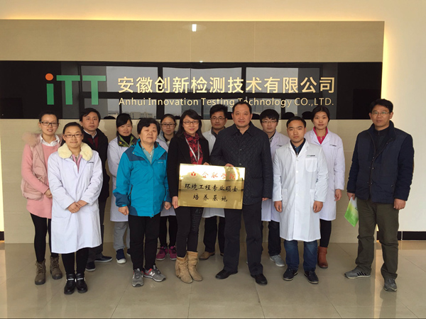 在前期调研和双方相互了解的基础上,2016年2月29日下午,生物与环境工程系主任俞志敏教授再次专程来到安徽创新检测技术有限公司,与该单位袁媛总经理、周世厥总工进行会谈,就双方合作申报项目、联合培养硕士研究生、共同建立与分享实验室及仪器设备等问题进行深度交流。通过交流达成共识,确定安徽创新检测技术有限公司为我校硕士专业学位研究生校外合作培养基地,每年接收我校一定数量的研究生在该单位开展实践教学活动和开展项目学习等,最后举行了校外培养基地授牌仪式。