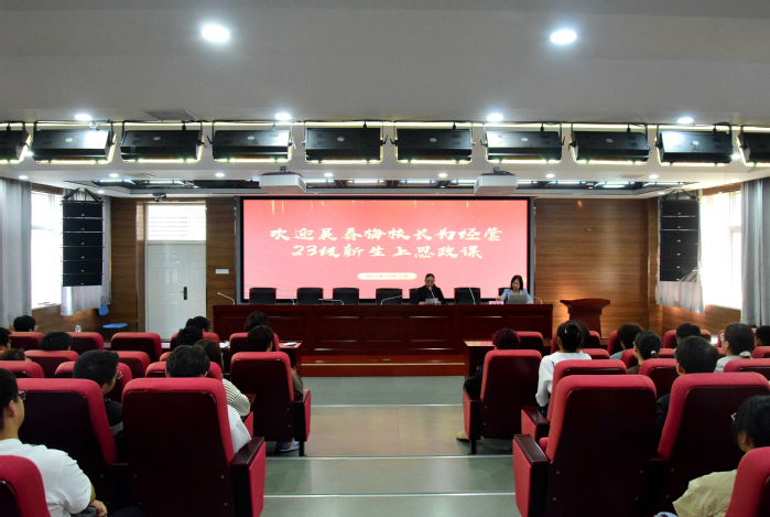 10月11日下午,院长吴春梅在一期六号楼一楼报告厅为经济与管理学院新生讲授“开学第一课”,来自经济学、经济工程、金融学等专业的70余名新生到场聆听。