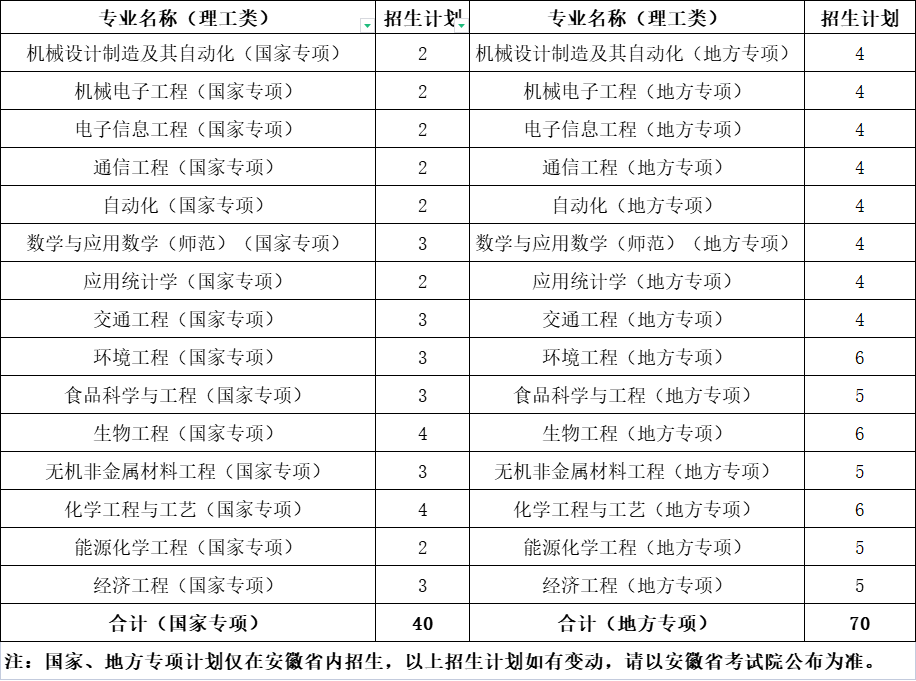 合肥学院2023年安徽省专项分专业招生计划(理工类)(安徽省院校报考代码9110)