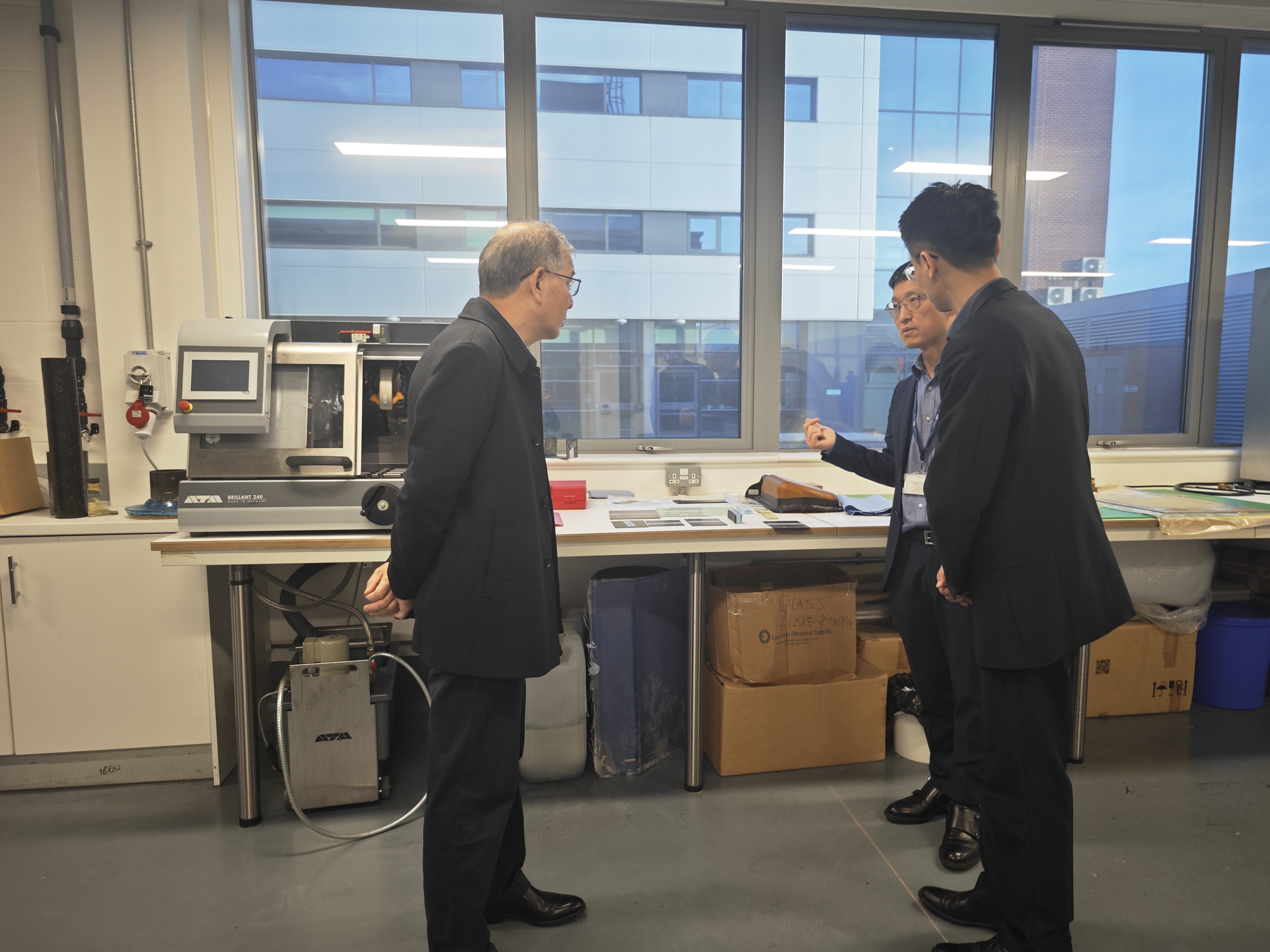 在德比大学期间,王其东一行访问了德比大学工程学院,考察复合材料研究中心、抗震阻尼系统实验室、复合材料制备工程实验室、电子抗冲击实验室、性能综合测试实验室与工业设计实验室,与工程学院院长彼得·凯伯德(Peter Kyberd)教授进行会谈,洽谈在增材制造及汽车高性能材料等领域的合作。