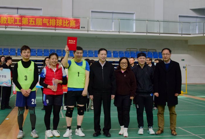 11月30日下午,合肥学院教职工第五届气排球比赛闭幕式于二期体育馆举行。党委副书记刘建中、工会主席宣文、研究生处处长葛春梅、公共体育与艺术教学部主任许刚、工会副主席邵宏出席本次闭幕式并为获奖单位颁奖,各分工会领队、参赛代表等参加闭幕式。