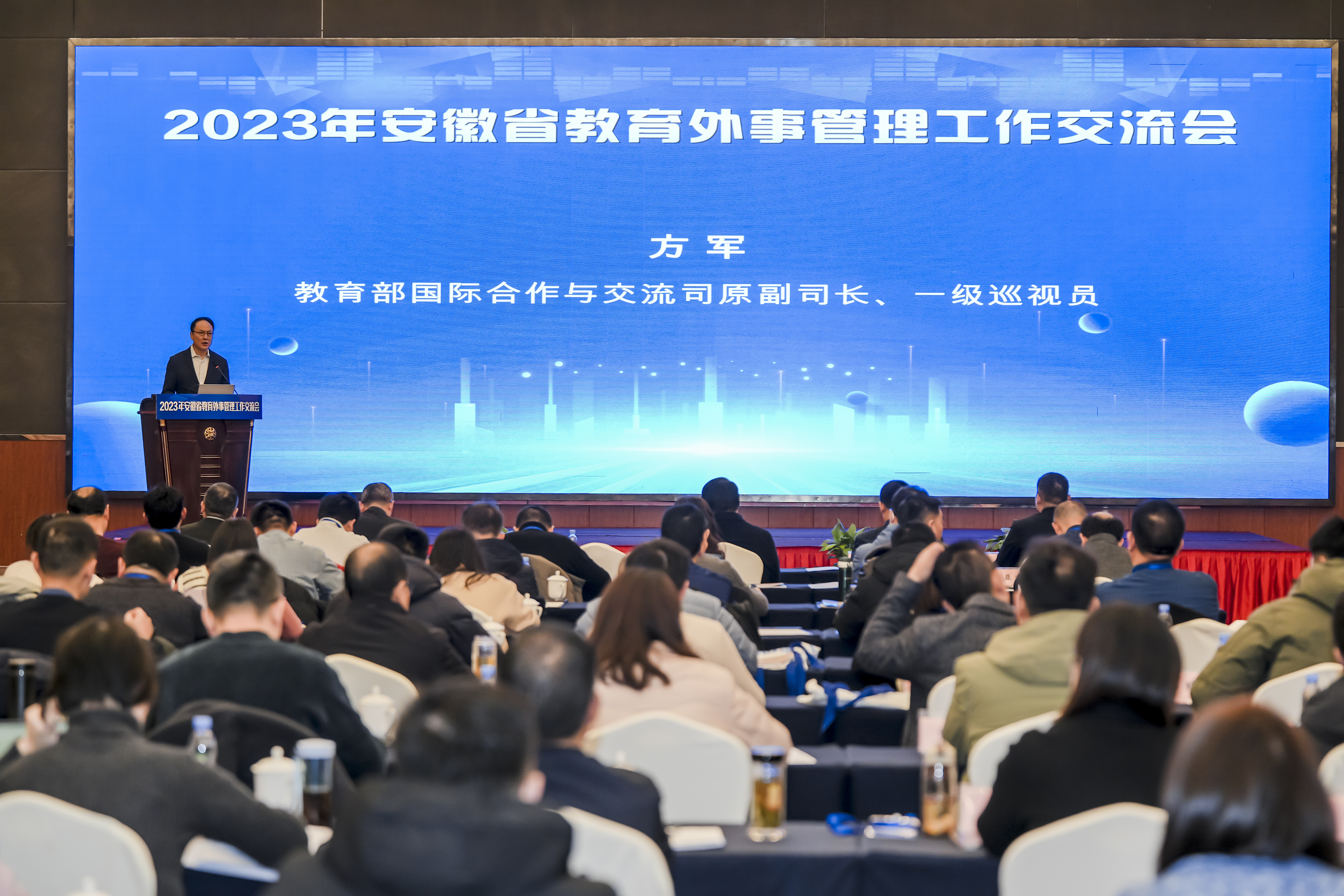 方军在致辞中指出,我国教育对外开放在新时代中奋进,在大变局中前行,积极构建面向全球的教育合作伙伴关系,加快形成全方位、多层次、宽领域的教育对外开放格局。近年来,安徽省教育对外开放事业取得了历史性成就,服务国家战略和地方发展能力持续提升。期待安徽教育外事工作继续统筹做好引进来走出去两篇大文章,不断加快和扩大教育对外开放,着力培养更具全球竞争力的人才,更好服务国家整体外交和地方经济社会发展。