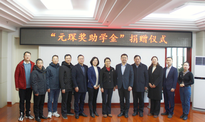 1月9日上午,我校在行政楼九楼东会议室举行“元琛奖助学金”捐赠仪式。安徽元琛环保科技股份有限公司执行总裁陈志,副校长、安徽中德教育合作基金会理事长陈秀出席,基金会相关负责同志、能源材料与化工学院领导班子及相关教师等参加捐赠仪式。仪式由基金会管理办公室主任刘金平主持。